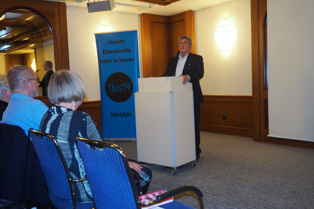 Am Samstag, dem 25.10. 2025, haben wir – die Bürgerinitiative 1bis19 – erstmals den Preis für den „kreativsten“ Umgang mit den Grundrechten vergeben. Er geht von nun an jährlich an eine Person oder eine Institution, die einen besonders fragwürdigen Umgang mit den Grundrechten gezeigt hat. Dabei wird jeder Bürger die Möglichkeit haben, Vorschläge einzureichen. Die Preisverleihung fand in Köln vor etwa 130 Besuchern statt – einigen musste wegen der großen Nachfrage bereits im Vorfeld abgesagt werden.